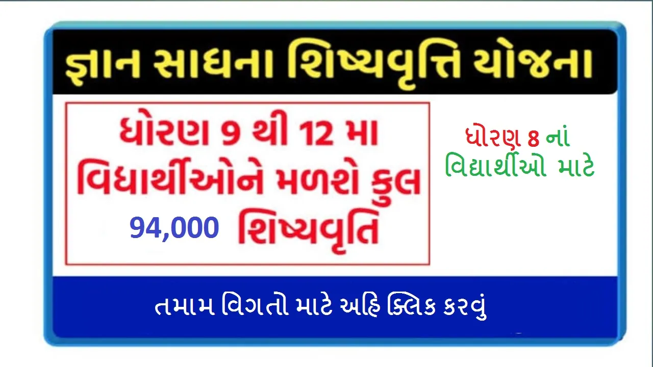ધોરણ 8 મુખ્યમંત્રી જ્ઞાન સાધના શિષ્યવૃત્તિ પરીક્ષા જાહેરનામુ 2024