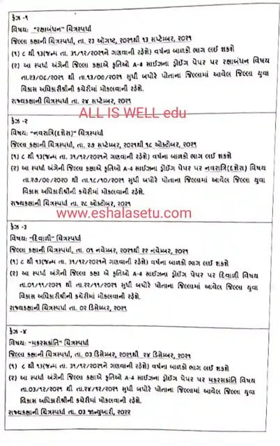The state level painting competition will be organized by them by selecting the artists of the best 10 paintings selected by the judges. On 24/09/2021 at the office of the District Sports Officer, Ahmedabad, the contestant has to report to the District Youth Development Officer by 11 am.